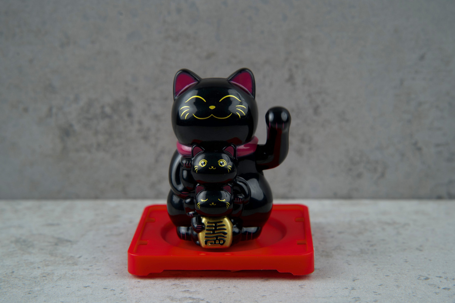 Японський кіт Манекі Неко 6,5 см чорний (на сонячній батареї, ліва лапка) — компактний оберіг, який допомагає захищати простір від негативу та створює відчуття безпеки вдома, в офісі чи магазині. Під сонячним світлом котик рухає лапкою, приносячи спокій і гармонію у навколишнє середовище.