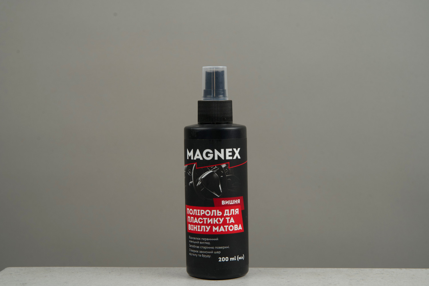 Поліроль MAGNEX матова вишня 200 мл — це швидкий і надійний догляд за пластиком і вінілом салону вашого автомобіля.