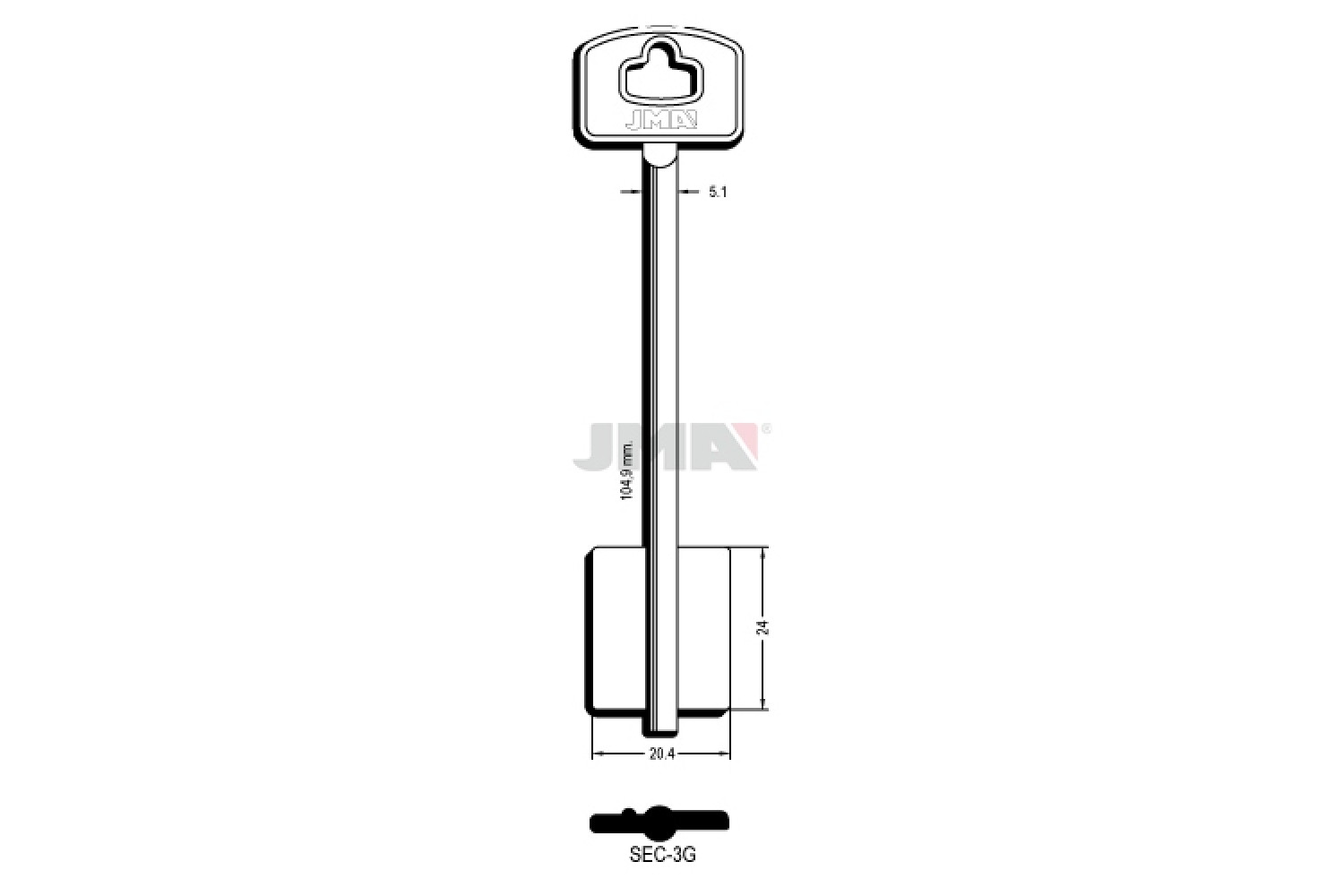 Заготовка ключа JMA 5SCM 12/SEC3G — надійна та високоточна заготовка для виготовлення ключів, створена для майстрів та сервісів, які цінують точність, зручність і довговічність у роботі. Ідеальний вибір для стабільного та якісного результату при виготовленні ключів.