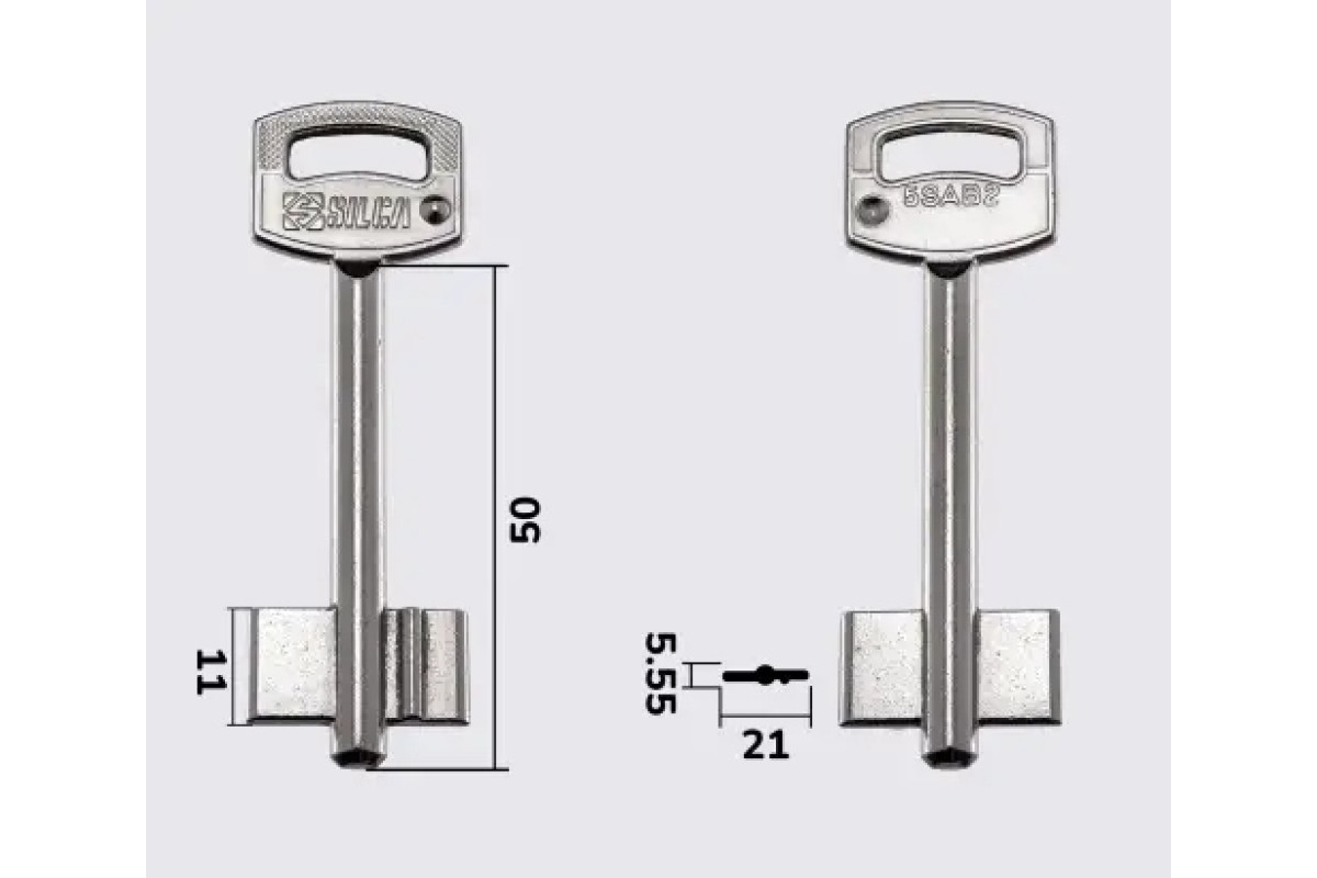 Заготовка ключа SILCA 5SAB2 (S) / SIB2G (J) — надійна заготовка від відомого виробника, розроблена для точного відтворення ключів різних типів. Ідеальний варіант для майстрів, які цінують акуратність, стабільну якість і довговічність результату при роботі.
