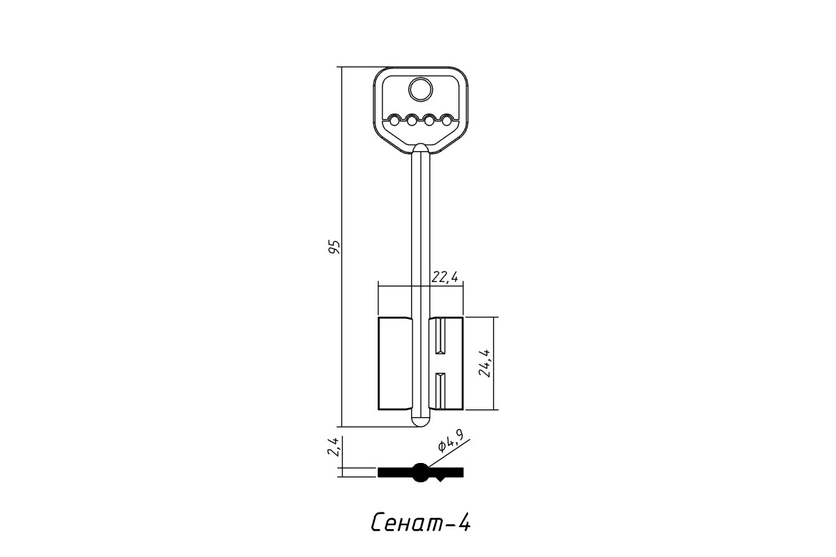 Заготовка ключа СЕНАТ №4/ DV19G — надійна та точна заготовка, розроблена для виготовлення якісних дублікатив ключів для щоденного використання.