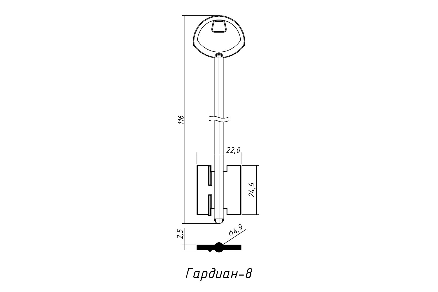 Заготовка ключа ГАРДІАН №8 — міцна та високоточна заготовка, призначена для виготовлення якісних дублікатів ключів.