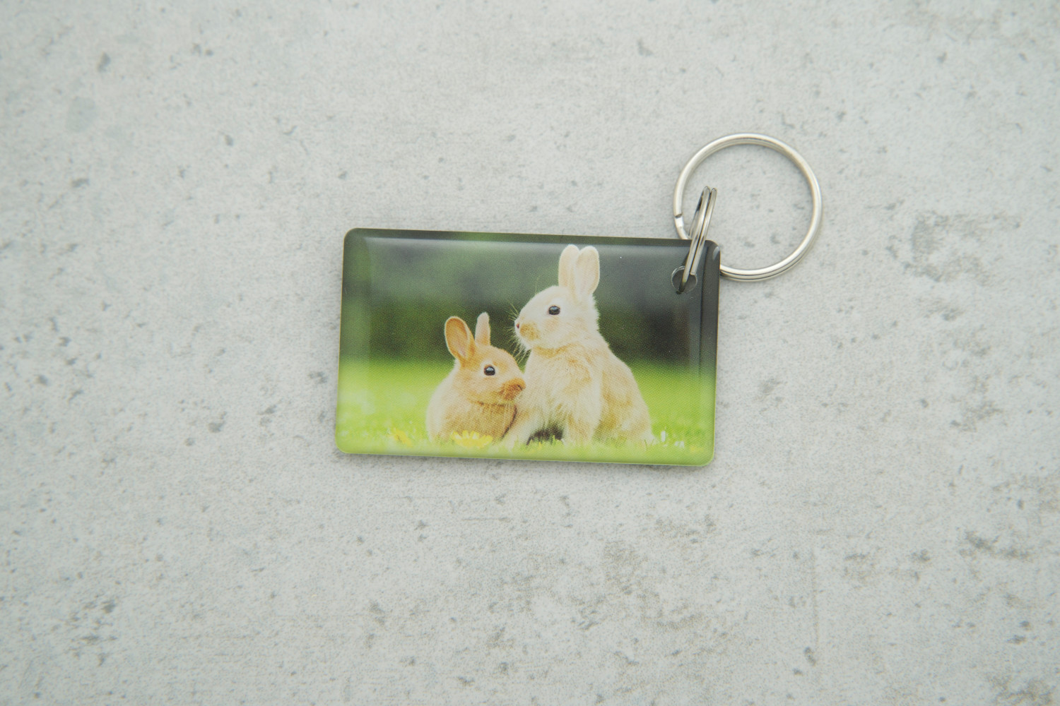 Оригінальний дизайн: малюнок «Зайчики» робить ключ стильним та помітним серед інших.