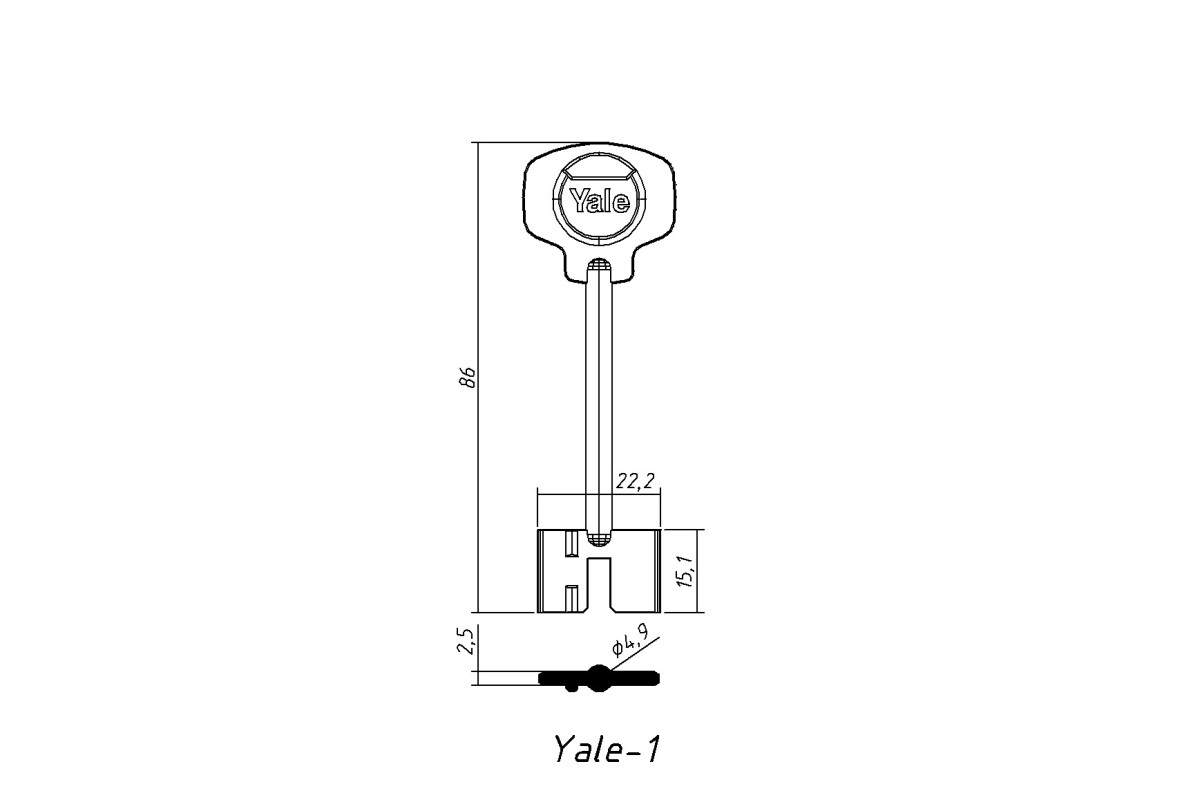 Заготовка ключа СЕЙФ YALE 1 — надійна металева заготовка для виготовлення точних дублікатів ключів до сейфів, забезпечує правильну роботу замкового механізму та довговічність використання.