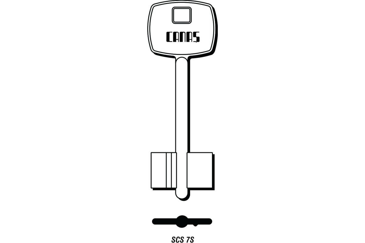 Заготовка ключа Canas SCS 7S — точна металева заготовка для виготовлення дублікатів ключів, що забезпечує правильну посадку та стабільну роботу замкового механізму.