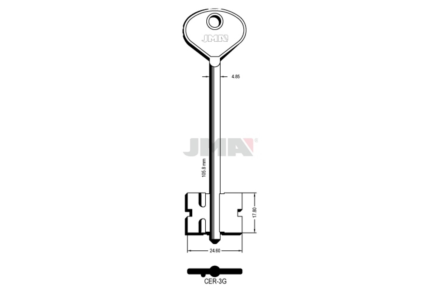 Заготовка ключа JMA CER 3G — точна металева заготовка для виготовлення дублікатів ключів, що забезпечує стабільну роботу замкового механізму та надійну посадку.