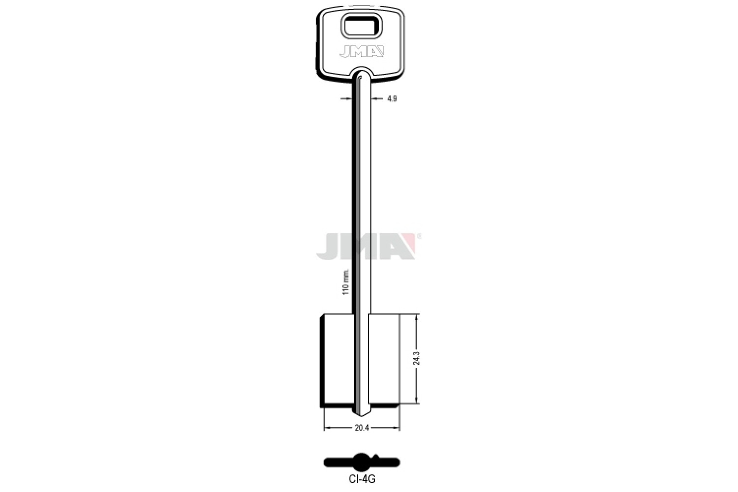 Заготовка ключа JMA CI 4 G — металева заготовка для виготовлення точних дублікатів ключів, що забезпечує правильну посадку та надійну роботу замкового механізму.