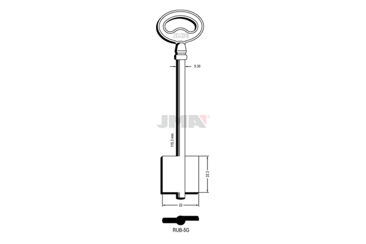 Заготовка ключа JMA RUB5G (J) / 5DVN34 (S) RUBEN БІЗОН 1 — металева заготовка для виготовлення точних дублікатів ключів зі стабільною посадкою та коректною роботою замкового механізму.