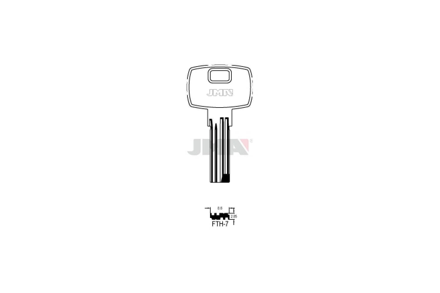 Заготовка ключа JMA FTH7/FH12/ALP 16 (Silka) — високоточна металева заготовка для виготовлення дублікатів ключів, що забезпечує ідеальну посадку та надійну роботу замкового механізму.