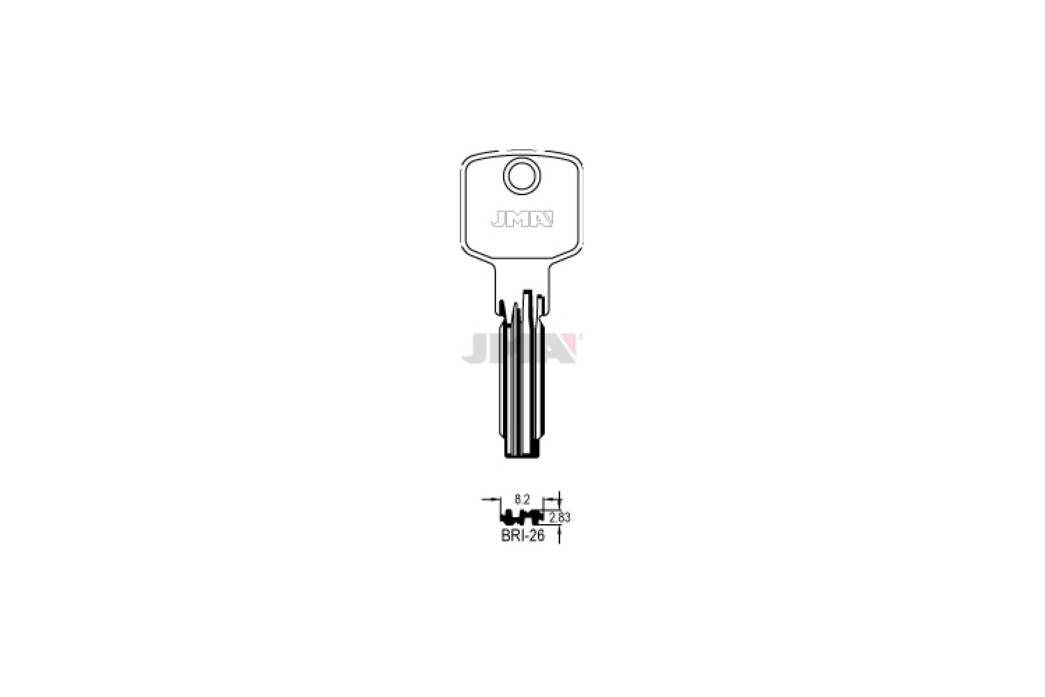 Заготовка ключа JMA BRICARD BRI26/CS115 дозволяє отримати довговічний і точний дублікат для щоденного використання.