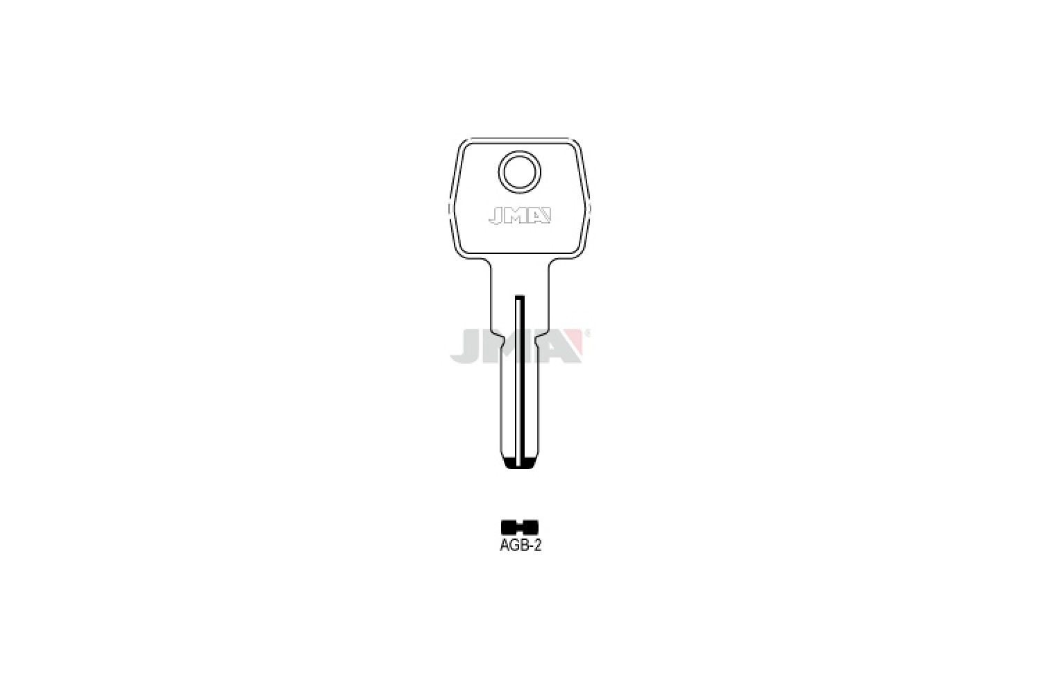 Заготовка ключа JMA AGB 2 (AGB 5 Silca) — металева заготовка для виготовлення точних дублікатів ключів AGB, що забезпечує надійну роботу замкового механізму та тривалий термін експлуатації.