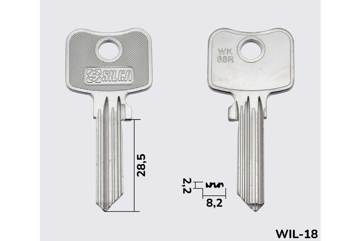 Заготовка ключа SILCA WILKA WK68R — високоточна металева заготовка, створена для виготовлення надійних дублікатів ключів, що забезпечують ідеальне прилягання та безперебійну роботу замкового механізму.