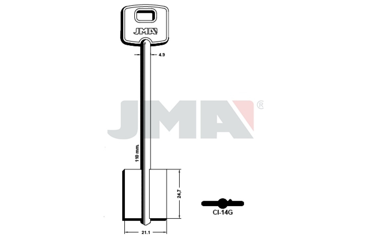 Заготовка ключа JMA CSL (P)/CI 14G(J) забезпечує точний і надійний дублікат для регулярного використання.