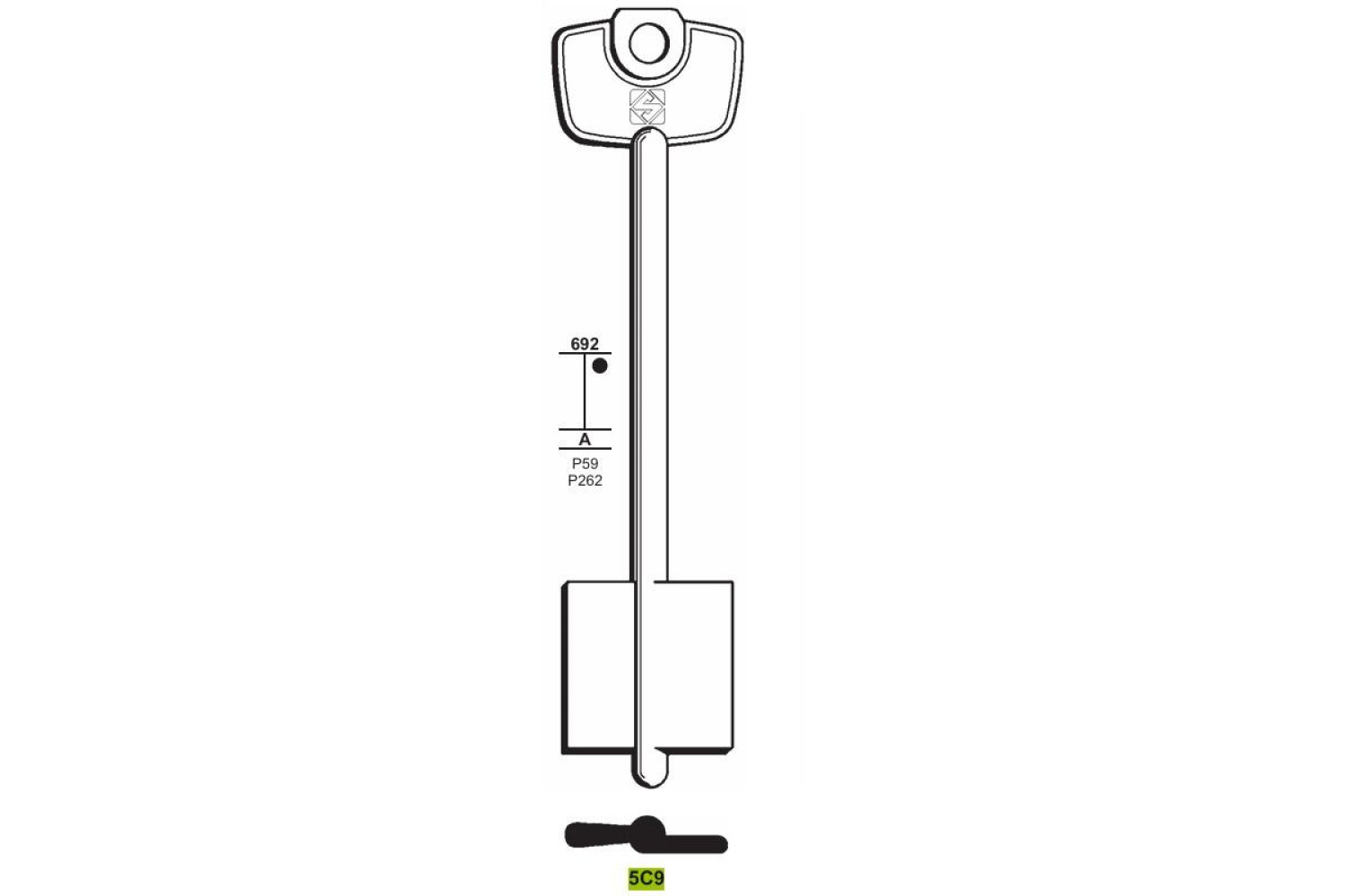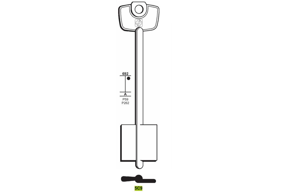Заготовка ключа Silca 5C9 — металева заготовка для виготовлення надійних дублікатів ключів, що забезпечує правильну посадку та стабільну роботу замкового механізму.