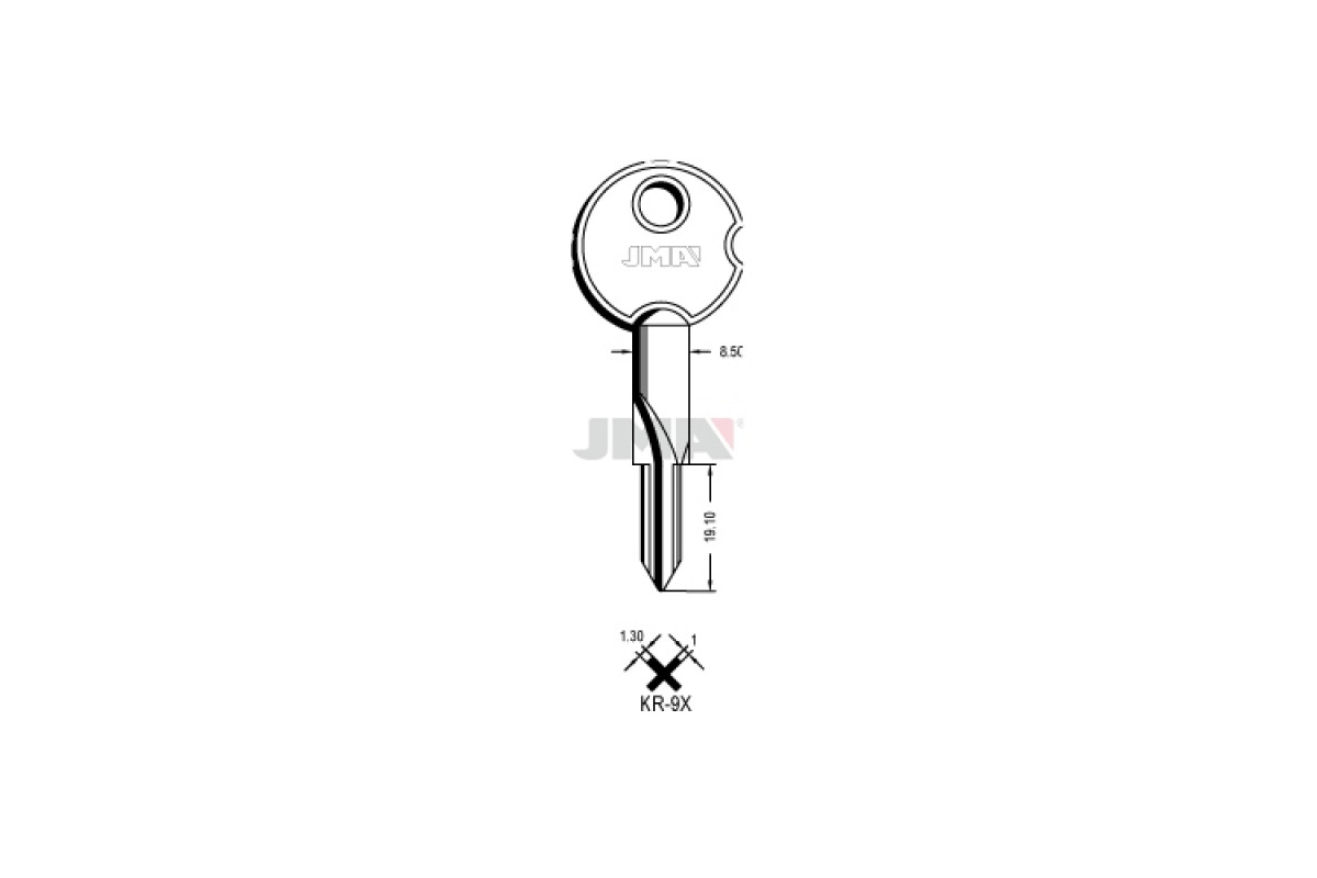 Заготовка ключа JMA KR 9X — високоточна заготовка для виготовлення ключів, що забезпечує надійне і довговічне користування замком.
