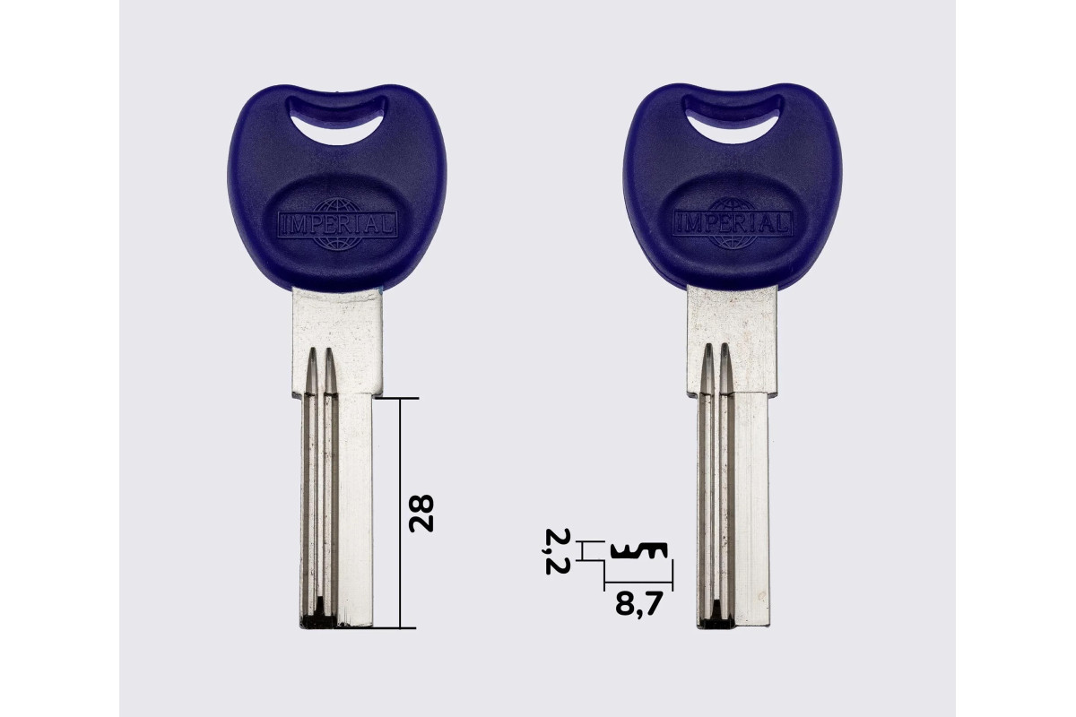 Заготовка ключа IMPERIAL — міцна металева заготовка, призначена для виготовлення точних дублікатів ключів, що забезпечують стабільну роботу замка та довговічне використання.