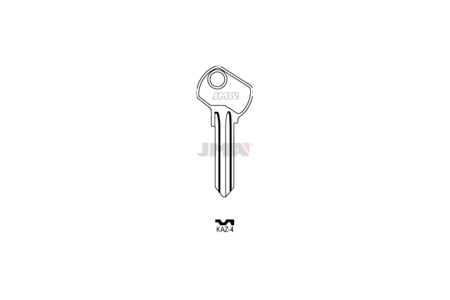 Заготовка ключа JMA KAZ 4 / KAZ4R / KAN4S — високоточна металева заготовка для створення надійних дублікатів ключів, що забезпечує стабільну роботу замкового механізму та точне прилягання.
