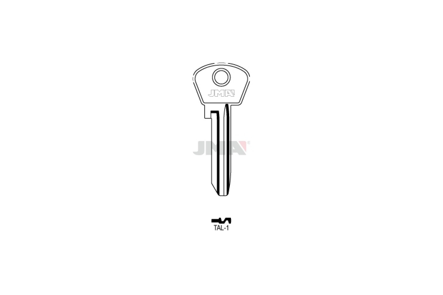 Заготовка ключа JMA TAL 1 (ф/з) — металева заготовка для виготовлення точних дублікатів ключів із надійною та стабільною роботою в замковому механізмі.