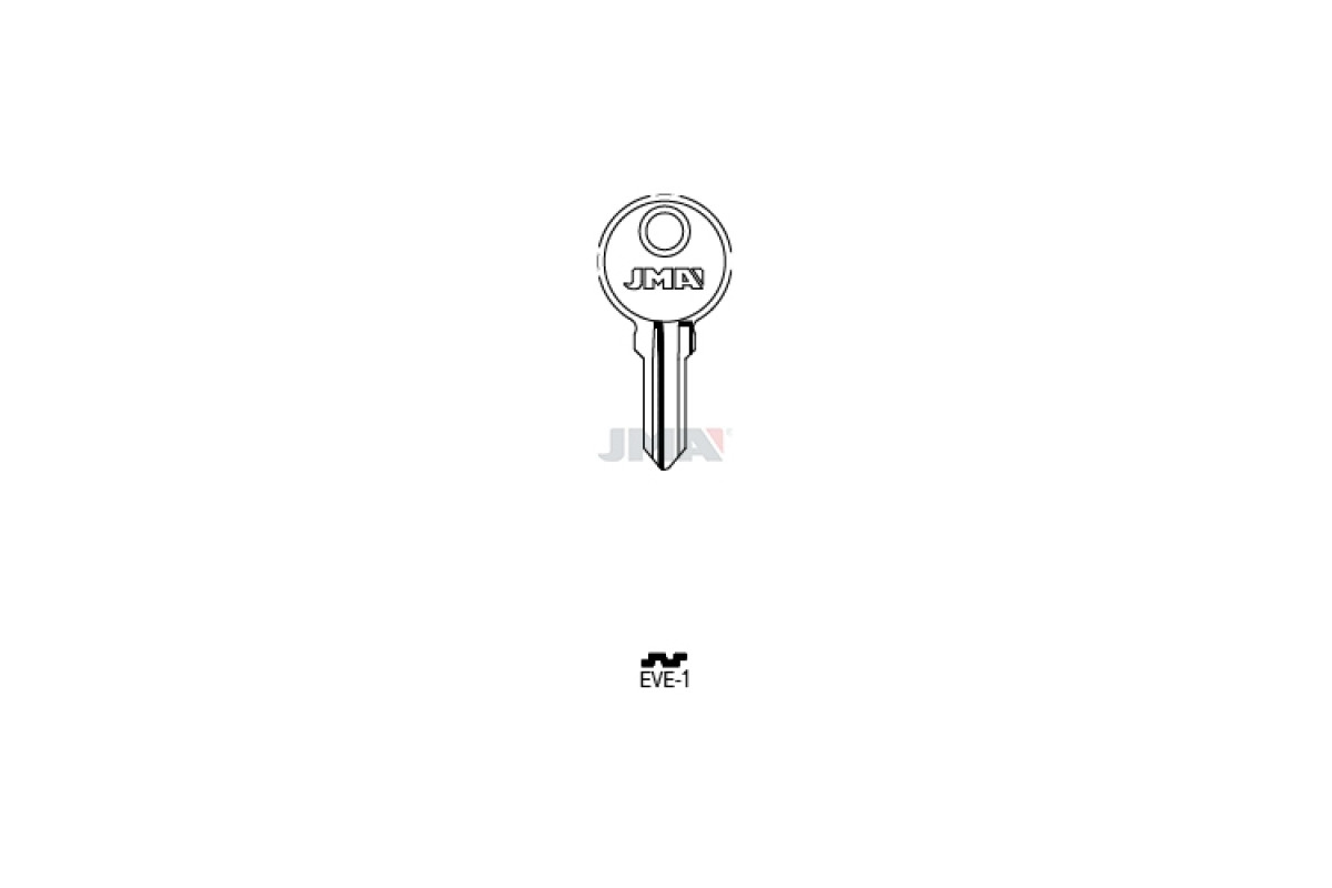 Заготовка ключа JMA EVE 1 — металева заготовка для виготовлення точних дублікатів ключів, що забезпечує надійну роботу замкового механізму та правильне прилягання.