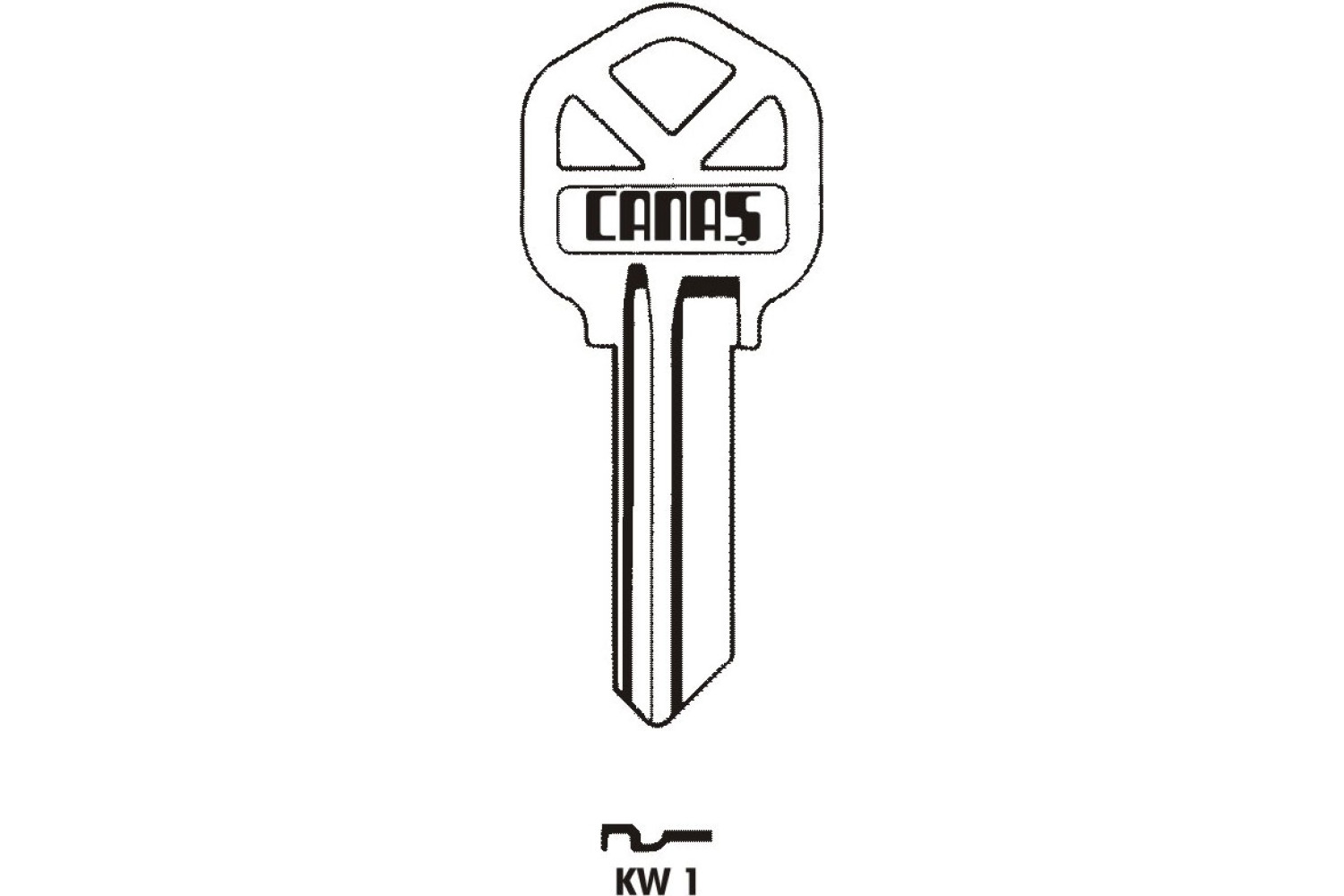 Заготовка ключа Canas KW 1 (KWIKSET) — надійна металева заготовка для виготовлення точних дублікатів ключів, що забезпечує стабільну роботу замка та точне прилягання.