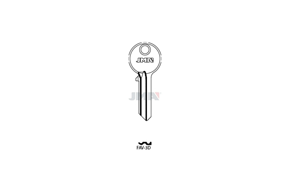 Заготовка ключа JMA FAV 3D — металева заготовка для виготовлення точних дублікатів ключів, що забезпечує правильну роботу замка та надійне прилягання.