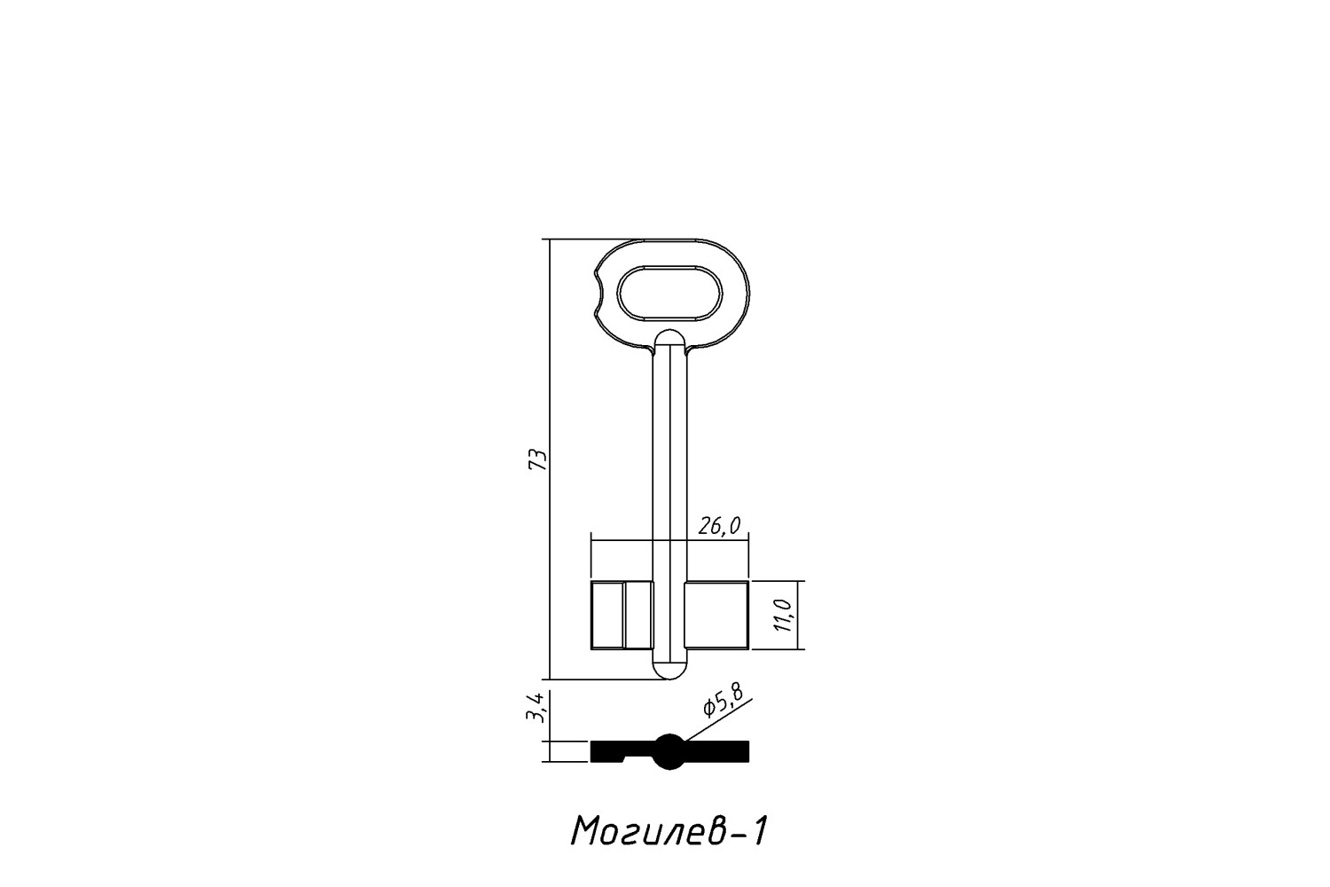 Заготовка ключа МОГИЛІВ 1 — практична металева заготовка для виготовлення точних дублікатів ключів, що гарантує коректну роботу замка та стабільне зчеплення з механізмом.