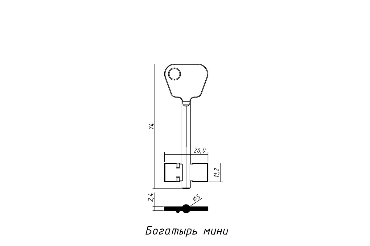 Заготовка ключа БОГАТИР-МІНІ — компактна металева заготовка для виготовлення точних дублікатів ключів із стабільною та надійною роботою замкового механізму.