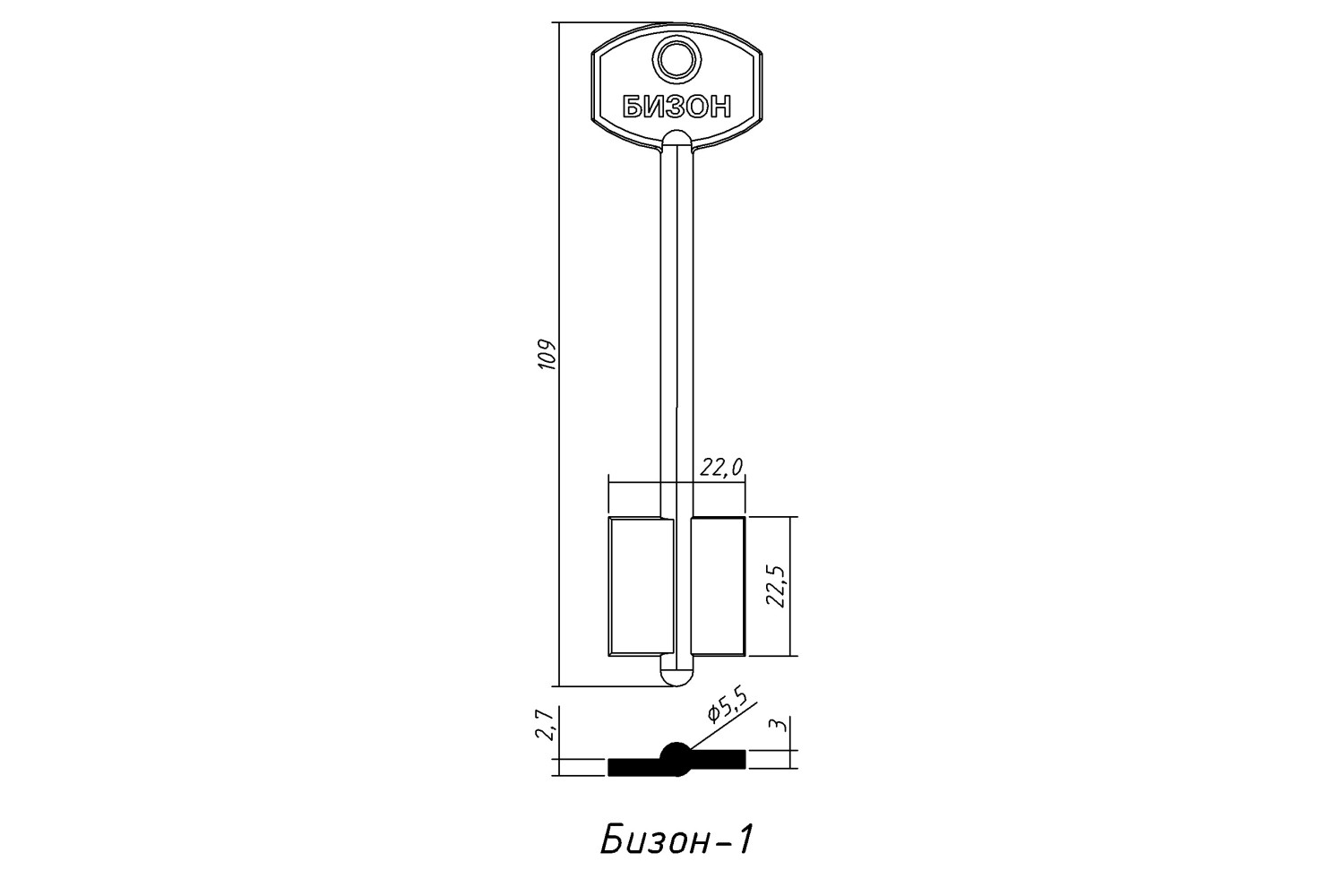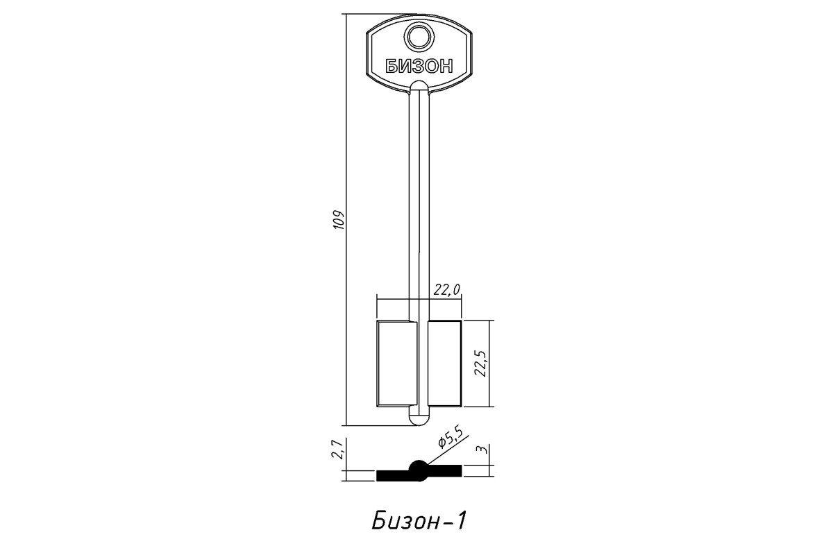 Заготовка ключа БІЗОН 1 — металева заготовка для виготовлення точних дублікатів ключів із надійною посадкою в замку.