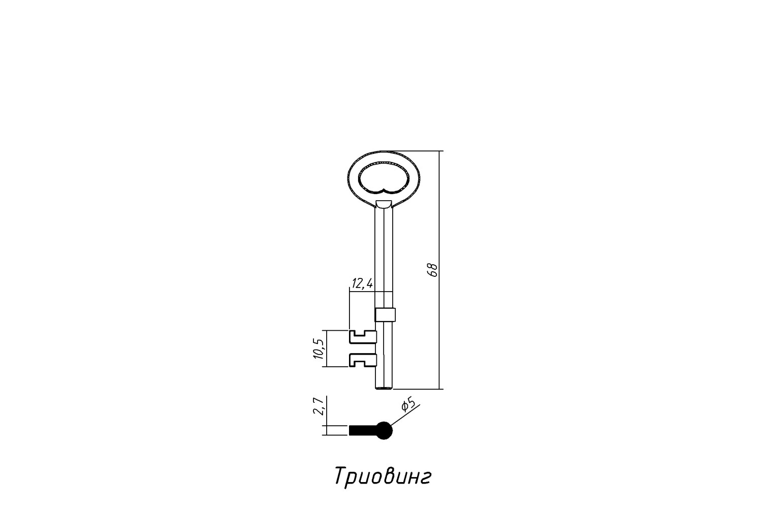 Заготовка ключа ТРИОВІНГ силумін — легка металева заготовка для виготовлення дублікатів ключів із точною посадкою в замку.