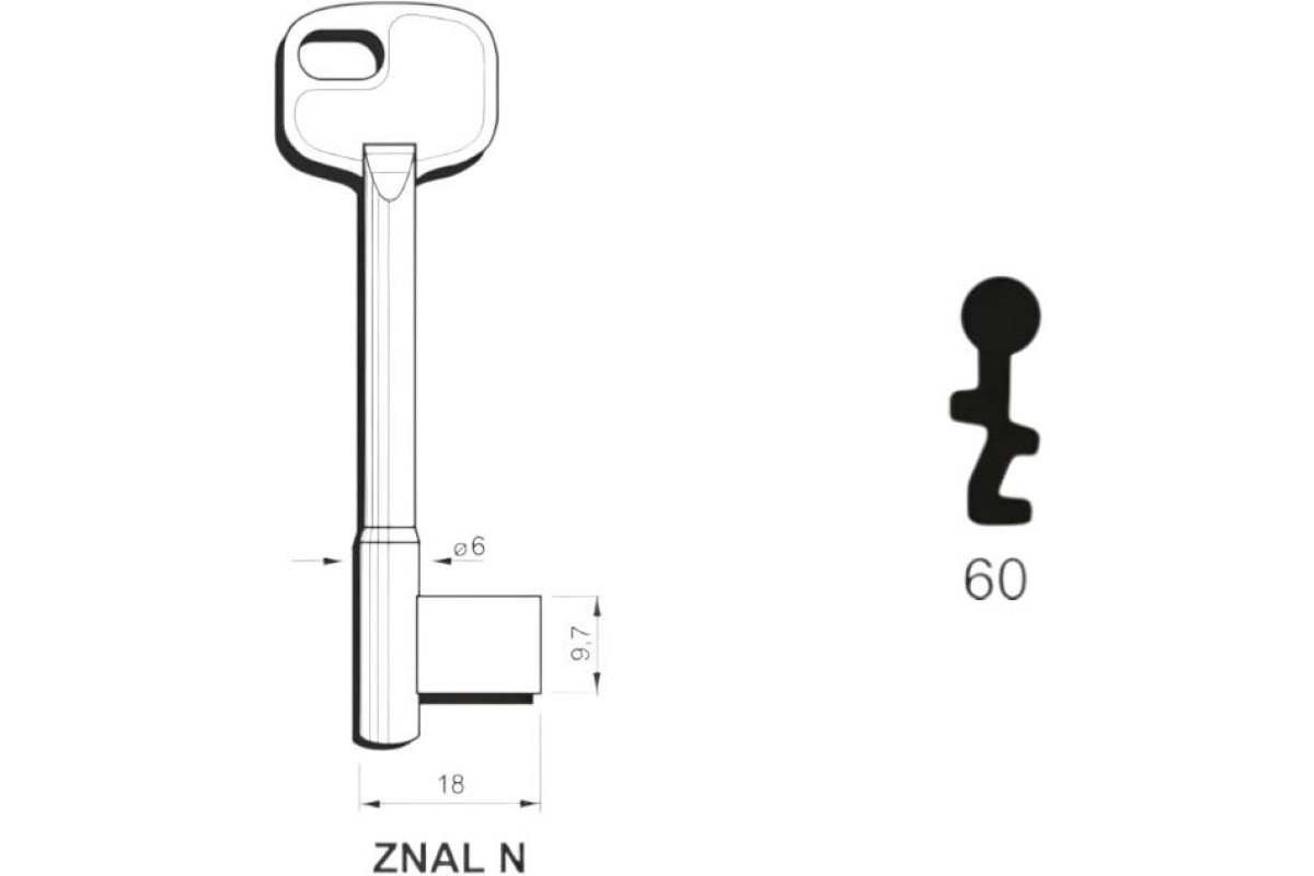 Заготовка ключа ELTO-ZNAL 6 60 — високоточна металева заготовка, призначена для виготовлення надійних дублікатів ключів із точним приляганням та стабільною роботою замкового механізму.