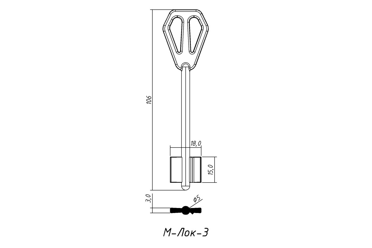 Заготовка ключа М-ЛОК-3 — універсальна металева заготовка для виготовлення точних дублікатів ключів із стабільною роботою замкового механізму.