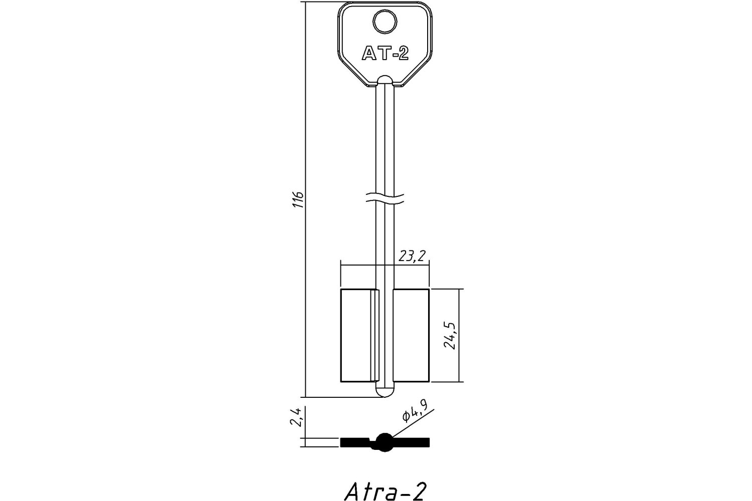 Заготовка ключа AT 2 (АТРА 2) — міцна металева заготовка для професійного виготовлення дублікатів ключів у майстернях та сервісних центрах.
