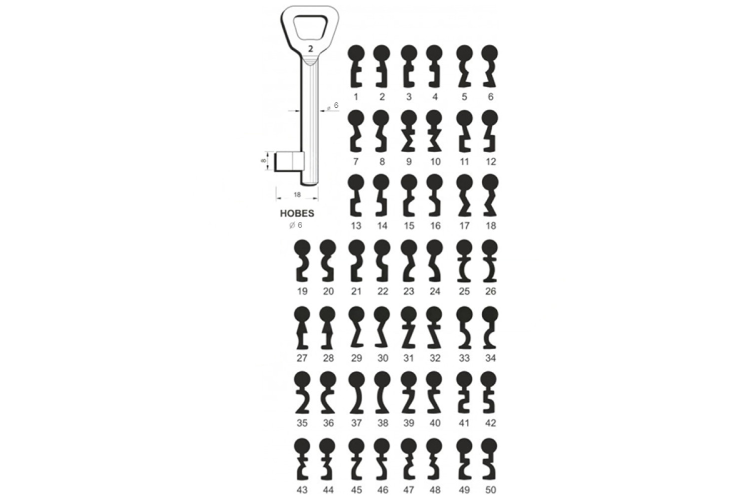 Заготовка ключа HOBES 6 12 — міцна металева заготовка, призначена для професійного виготовлення дублікатів ключів у майстернях та сервісних центрах.