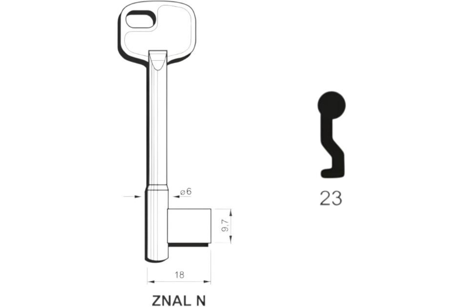 Заготовка ключа ELTO-ZNAL 6 23 — надійна металева заготовка для виготовлення дублікатів ключів у майстернях та сервісних центрах.