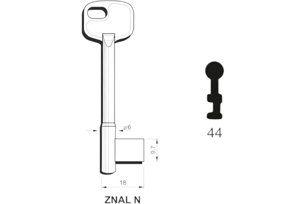 Заготовка ключа ELTO-ZNAL 6 44 — міцна металева заготовка для виготовлення дублікатів ключів у майстернях та сервісних центрах.