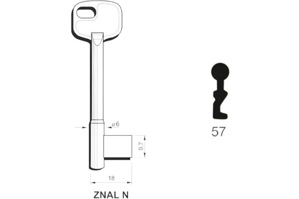 Заготовка ключа ELTO-ZNAL 6 57 — міцна та надійна металева заготовка для професійного виготовлення дублікатів ключів у майстернях і сервісах.