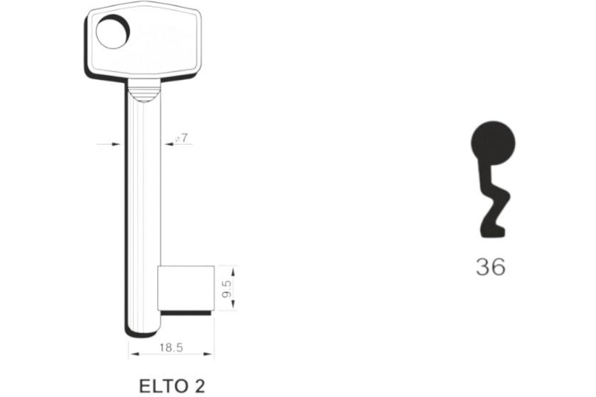 Заготовка ключа ELTO-ZNAL 7 36 — міцна металева заготовка для професійного виготовлення дублікатів ключів у майстернях та сервісних центрах.