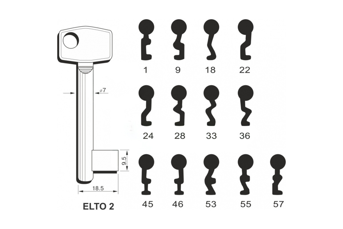 Заготовка ключа ELTO-ZNAL 7 27 — міцна металева заготовка, створена для професійного виготовлення дублікатів ключів у майстернях та сервісних центрах.