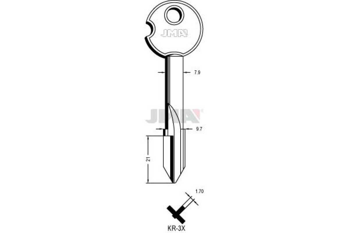 Заготовка ключа KR 5/KR3X (J) — якісна металева заготовка, призначена для точного виготовлення дубліката ключа.