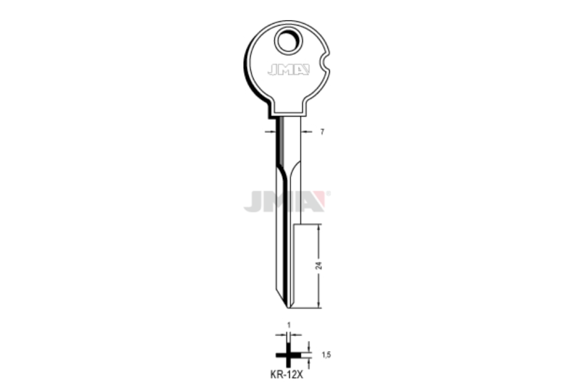 Заготовка ключа JMA KR12X дозволяє виготовити надійний і довговічний ключ для стабільної роботи замкового механізму.