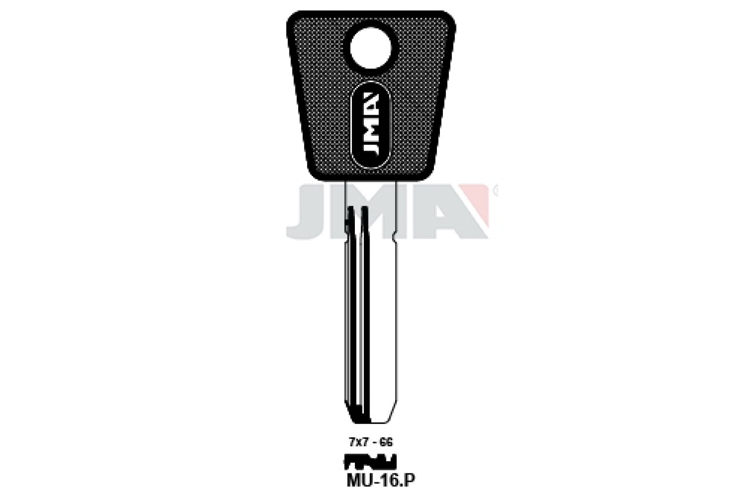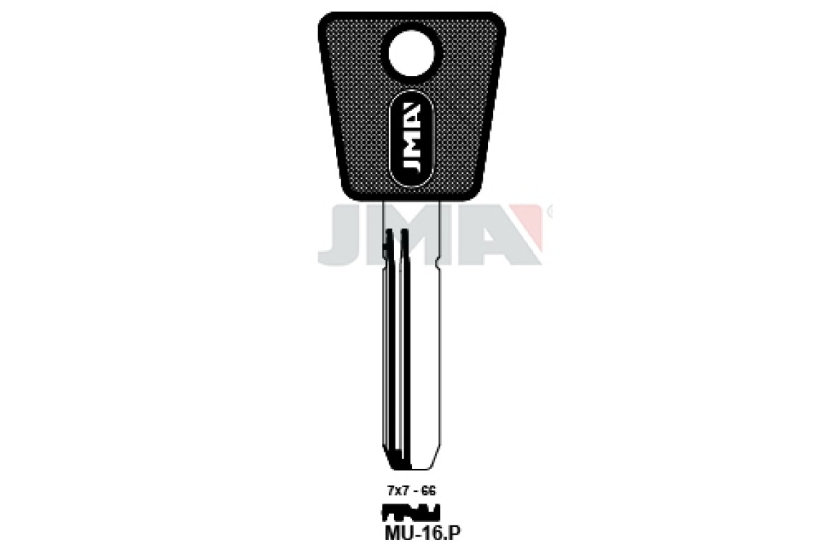 Заготовка ключа JMA MU16P (J)— надійна металева основа для виготовлення дублікатів ключів, що поєднує точність виконання, міцність матеріалу та стабільну якість у роботі майстрів.