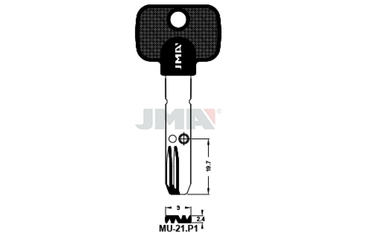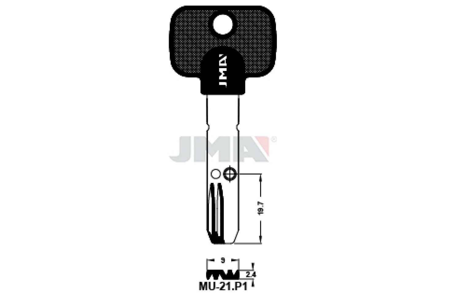 Заготовка ключа JMA MU21P1 (J) — високоякісна металева заготовка для виготовлення дублікатів ключів, яка поєднує точність виготовлення, міцність та стабільну якість у роботі майстрів.