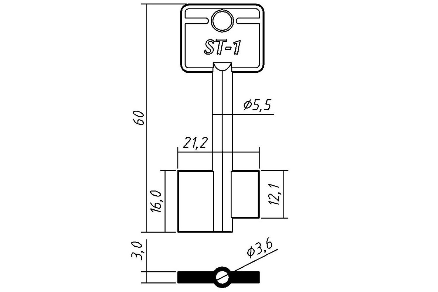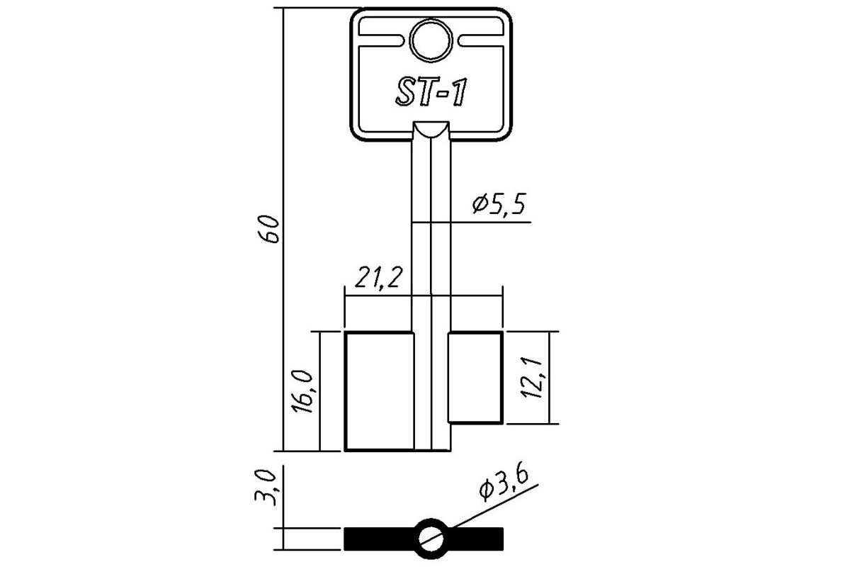 Заготовка ключа STUV 1 ORIGINAL СЕЙФ