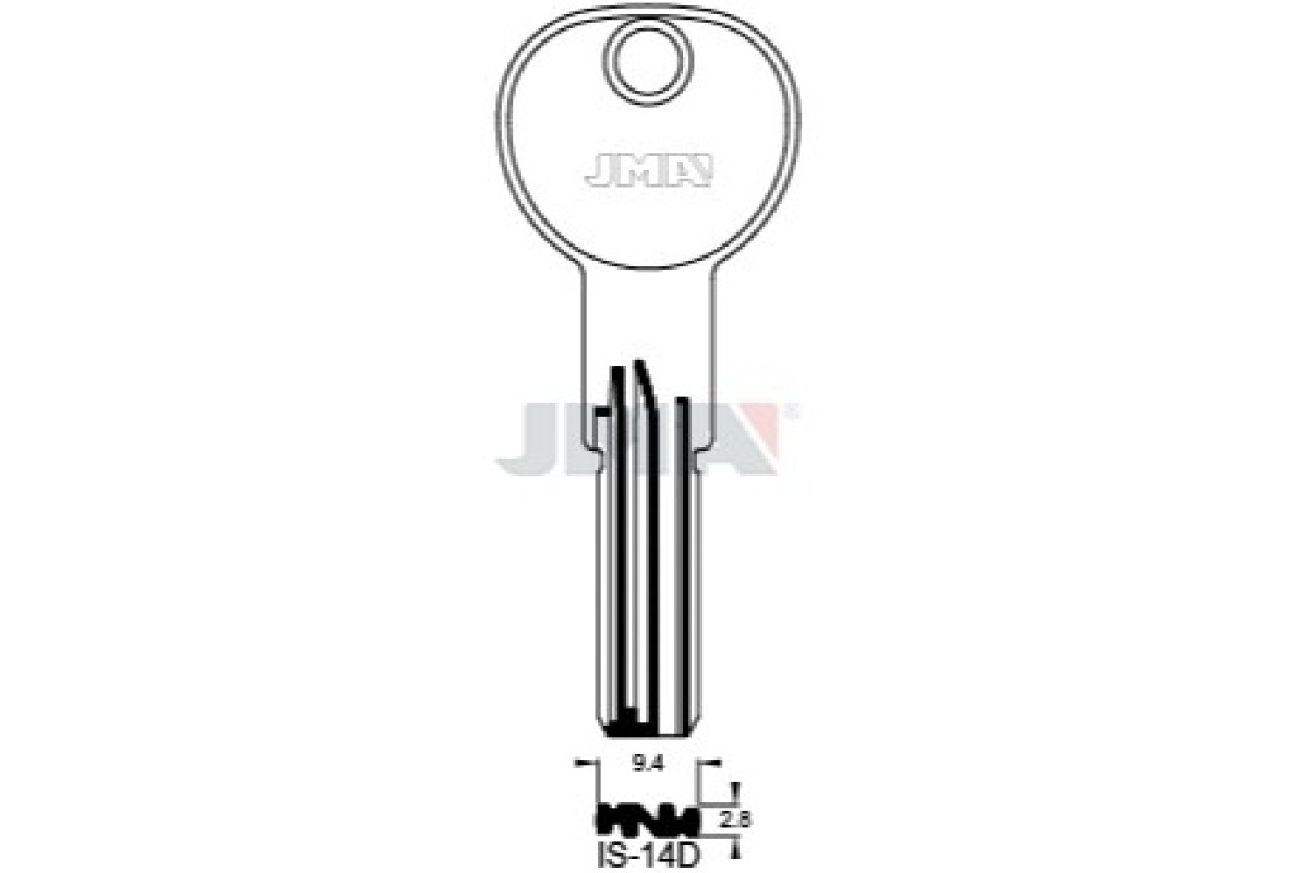 Заготовка ключа JMA IS14D (J) ISEO — якісна та точно виконана заготовка, призначена для виготовлення надійних дублікатів ключів із стабільною роботою та зручною обробкою.