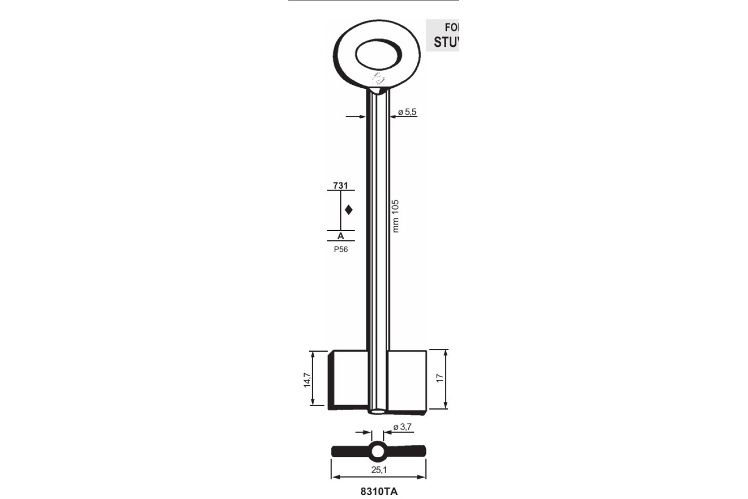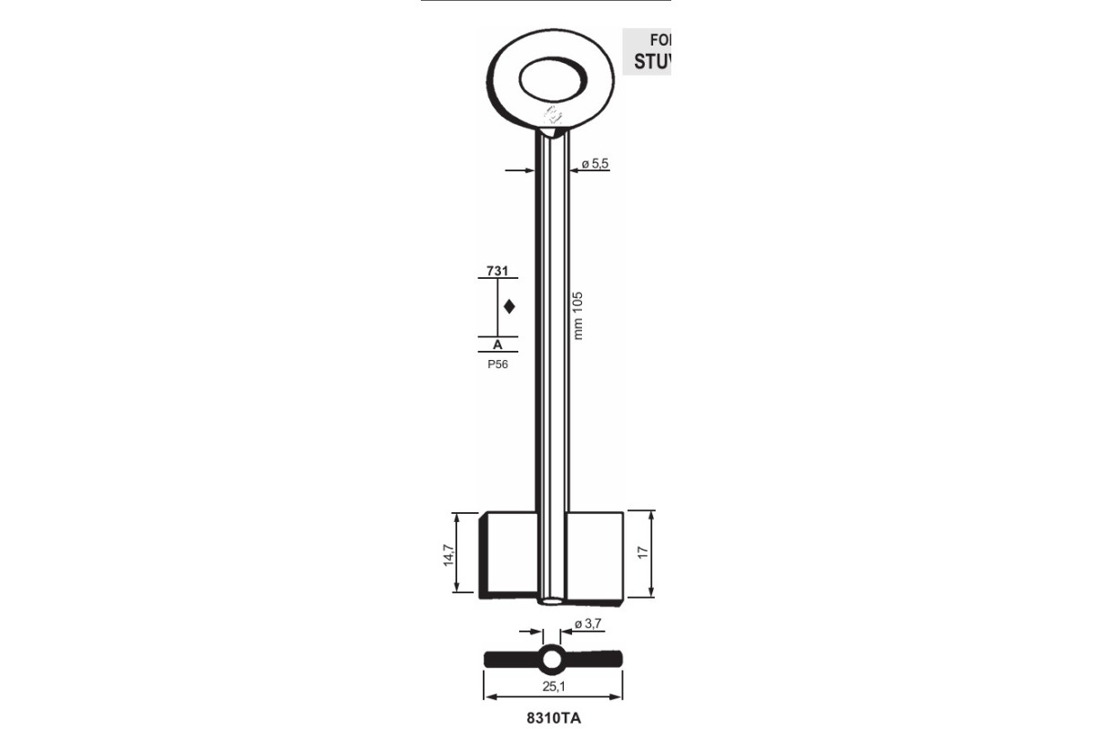 Заготовка ключа STUV 8310TA для сейфових замків — надійна основа для виготовлення дублікатів ключів із високою точністю та стабільною роботою у відповідальних механізмах.