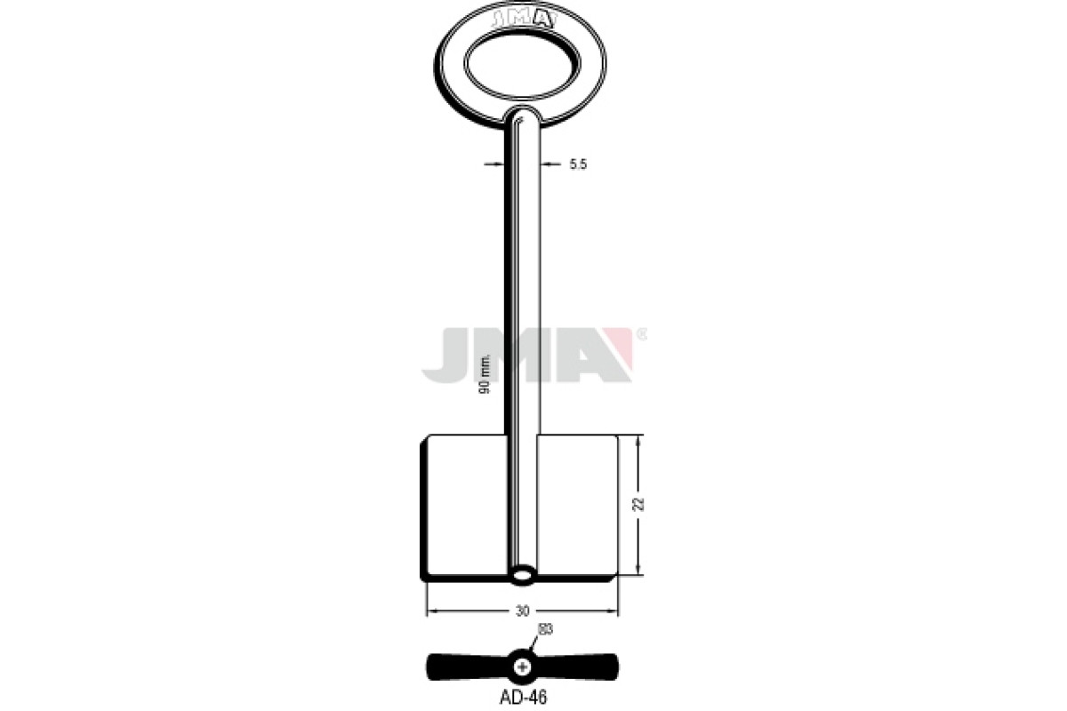 Заготовка ключа JMA AD46 СЕЙФ 90-5.5-3.0 — якісна заготовка для виготовлення ключів до сейфових замків із високою точністю та стабільною роботою.