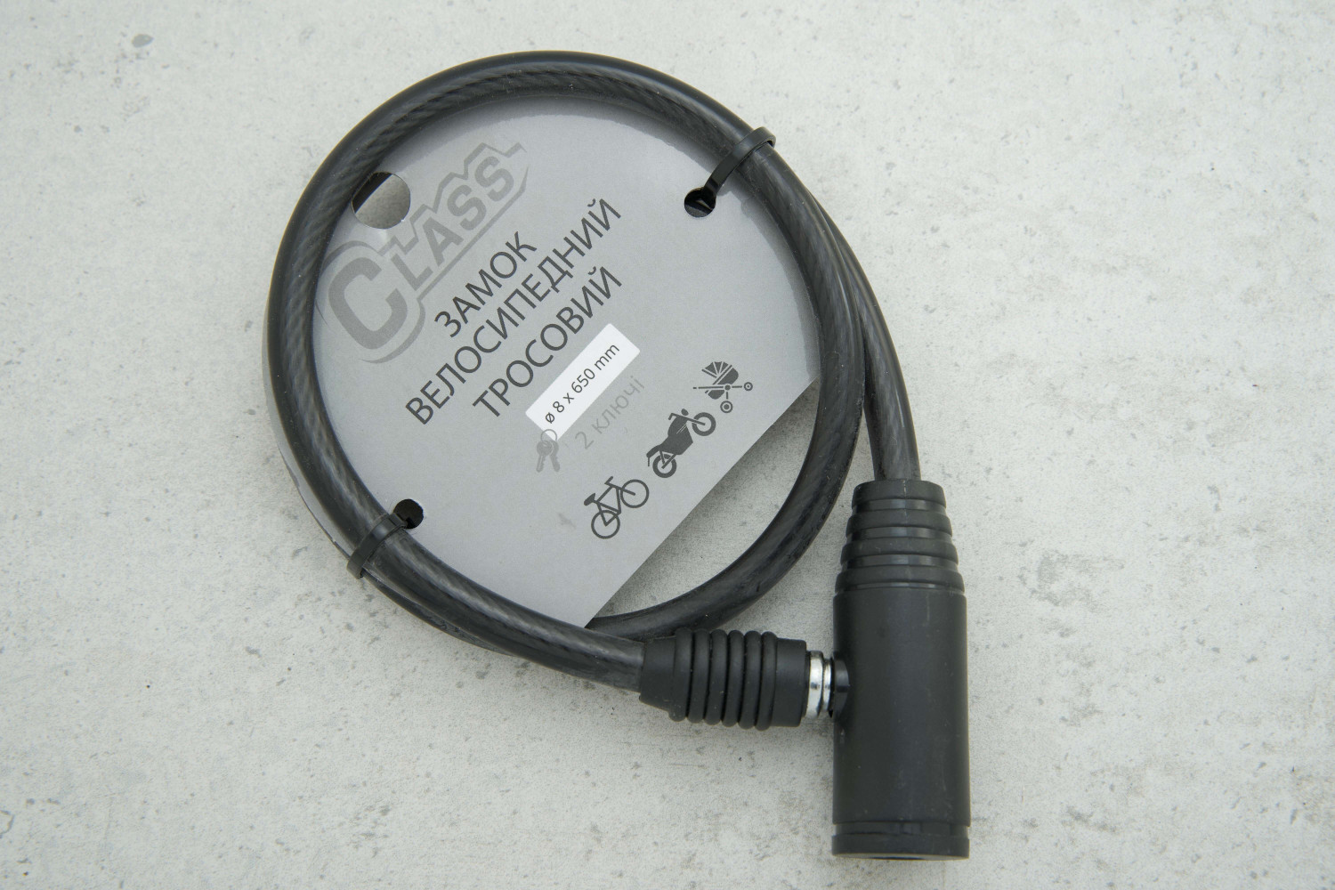 Замок велосипедний Class В3-650 МВР (чорний) — практичне та надійне рішення для щоденного використання. Гнучкий сталевий трос забезпечує зручне кріплення велосипеда до будь-якої опори, а міцний корпус замка гарантує стійкість до спроб злому та впливу погодних умов.