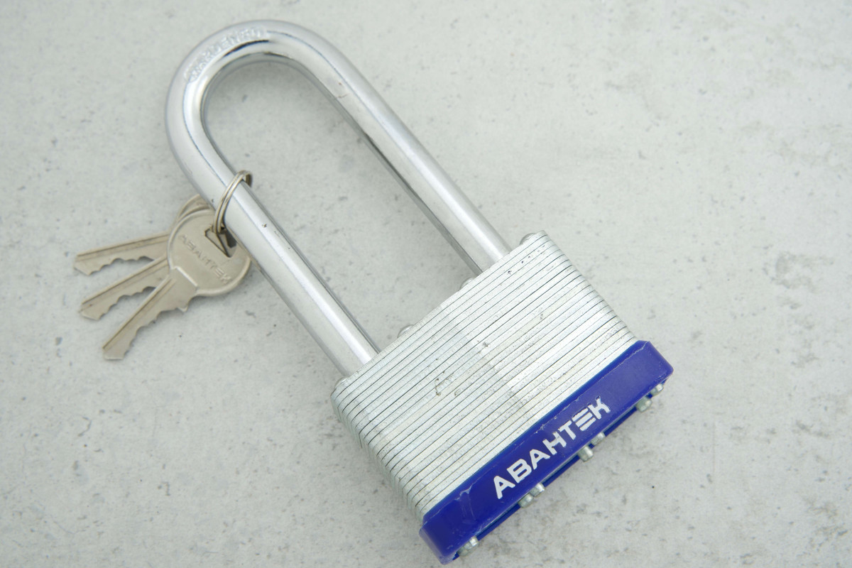 Замок навісний Авантек SL1565 L (65 мм довга дужка) — міцний і надійний захист для воріт, гаражів та шаф, довга дужка дозволяє легко встановлювати замок на різні типи скоб, стійкий до вологи, снігу та іржі.