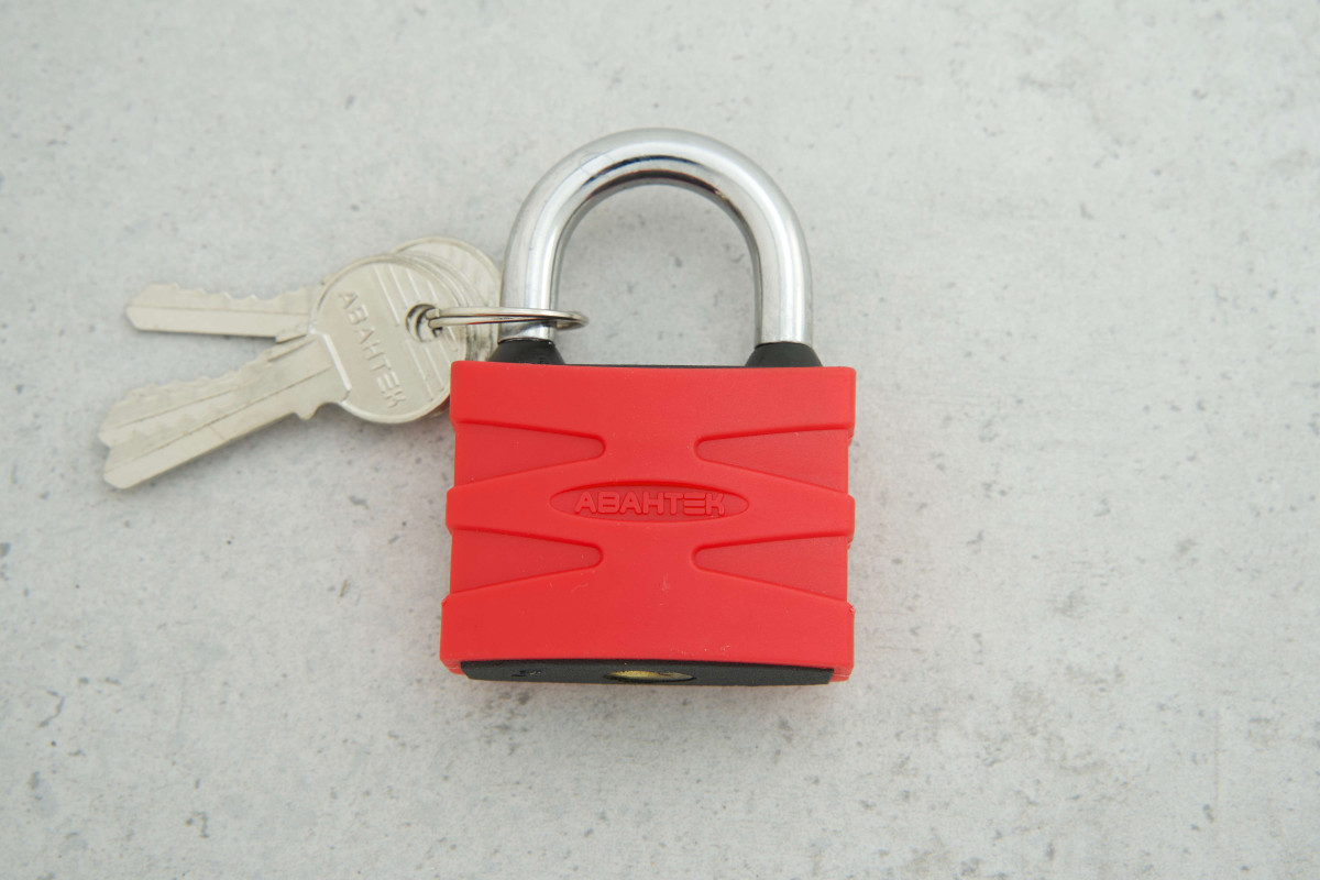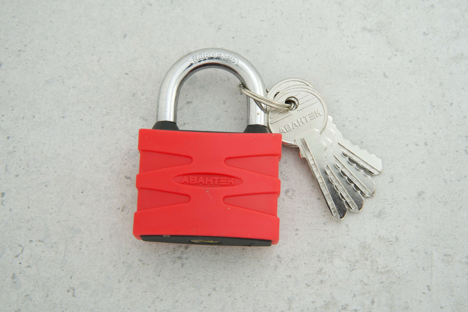 Замок навісний Авантек 50 мм червоний Т50 — надійний захист для шаф, гаражів, воріт та комор, стійкий до вологи, дощу та снігу.